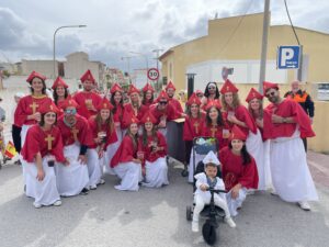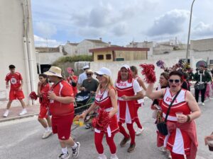 Por la tarde, los pobleros y pobleras mostraron su humor en una colorida cabalgata por las calles del pueblo. Hubo risas, escenas divertidas y muy buen rollo en una de las fiestas más arraigadas del municipio desde que la implantó en 1951 la ‘Quadrilla del Sarment’.