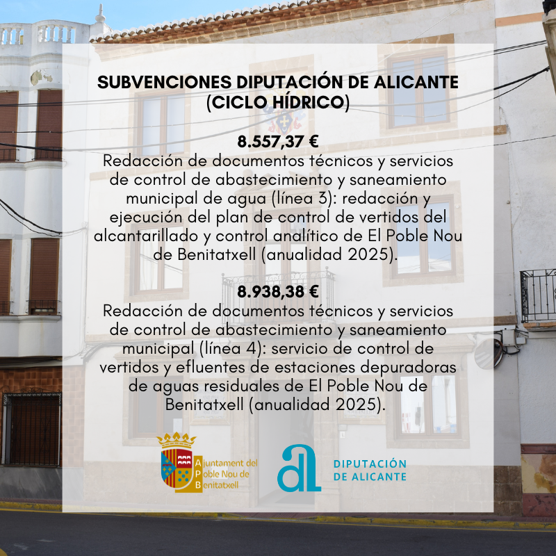 SUBSIDIES FROM THE ALICANTE PROVINCIAL COUNCIL (WATER CYCLE)