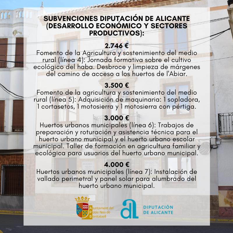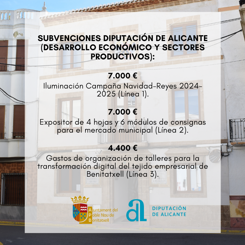 SUBVENCIONES DIPUTACIÓN DE ALICANTE (DESARROLLO ECONÓMICO Y SECTORES PRODUCTIVOS)