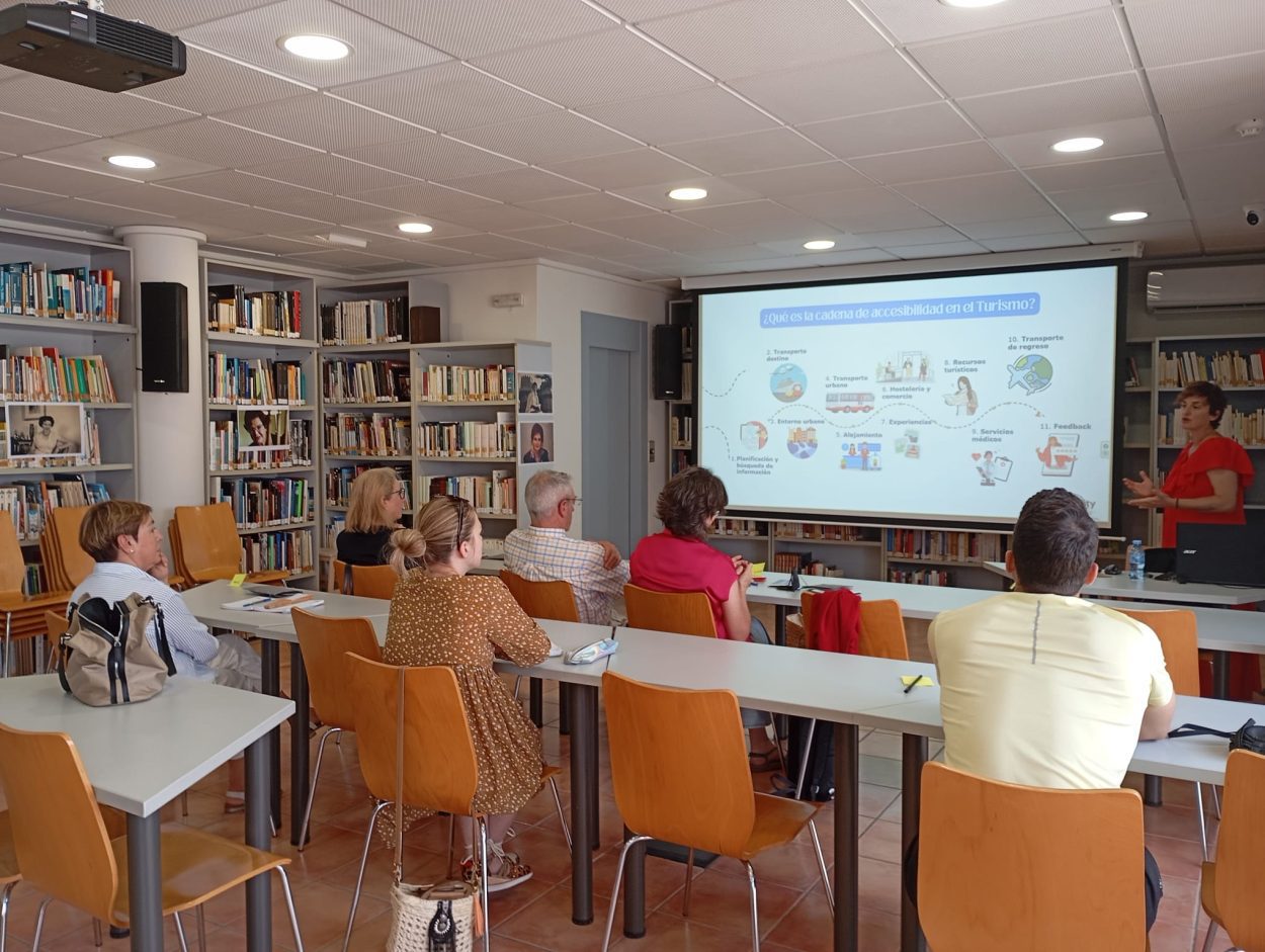 Además, se llevaron a cabo dos formaciones específicas dirigidas a distintos públicos clave. Por un lado, una sesión orientada al sector privado vinculado al turismo, en la que se abordaron herramientas y estrategias para ofrecer servicios turísticos más inclusivos y atractivos para todas las personas. Por otro, una formación dirigida al personal técnico del Ayuntamiento, con un enfoque más transversal y especializado, para integrar la accesibilidad en la planificación, el diseño urbano y la gestión municipal. Ambas acciones fueron fundamentales para sembrar conocimiento y compromiso en todos los niveles.