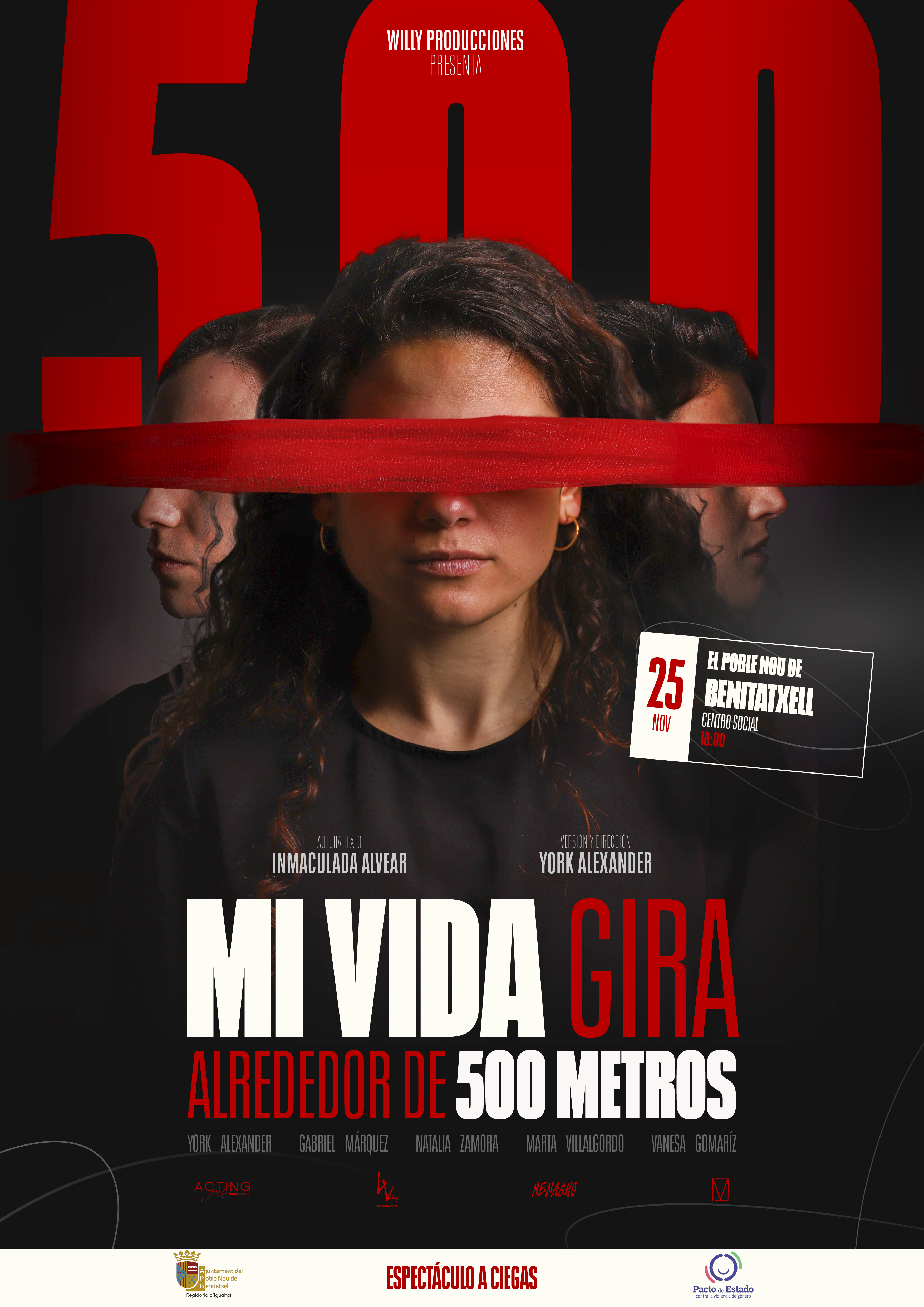 Pero será el martes 25, Día Internacional para la Eliminación de la Violencia hacia las Mujeres, el día central de la semana. El Centro Social acogerá a las 18.00h el espectáculo teatral ‘Mi vida gira alrededor… de 500 metros’. Se trata de una experiencia sensorial y teatral que invita a reflexionar sobre las distintas formas de violencias machistas que aún persisten en nuestra sociedad. Durante la representación, el público participa con los ojos tapados, viviendo de manera simbólica y emocional distintas escenas de violencia machista que se desarrollan a su alrededor. Se trata de una propuesta intensa y emocional, que puede herir la sensibilidad de algunas personas, por lo que desde la organización del acto se recomienda no asistir al espectáculo en caso de ser especialmente sensible o padecer claustrofobia o ansiedad.