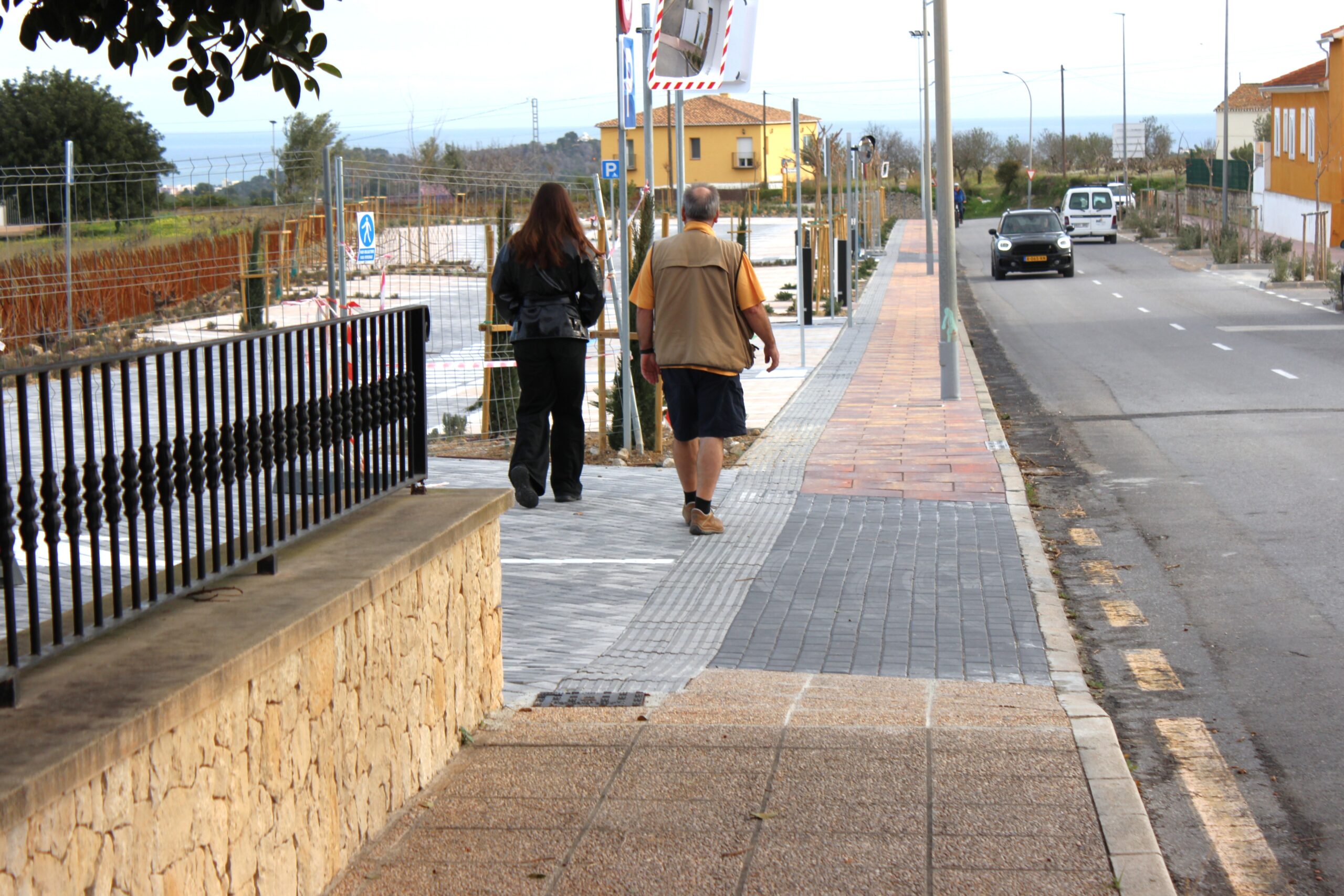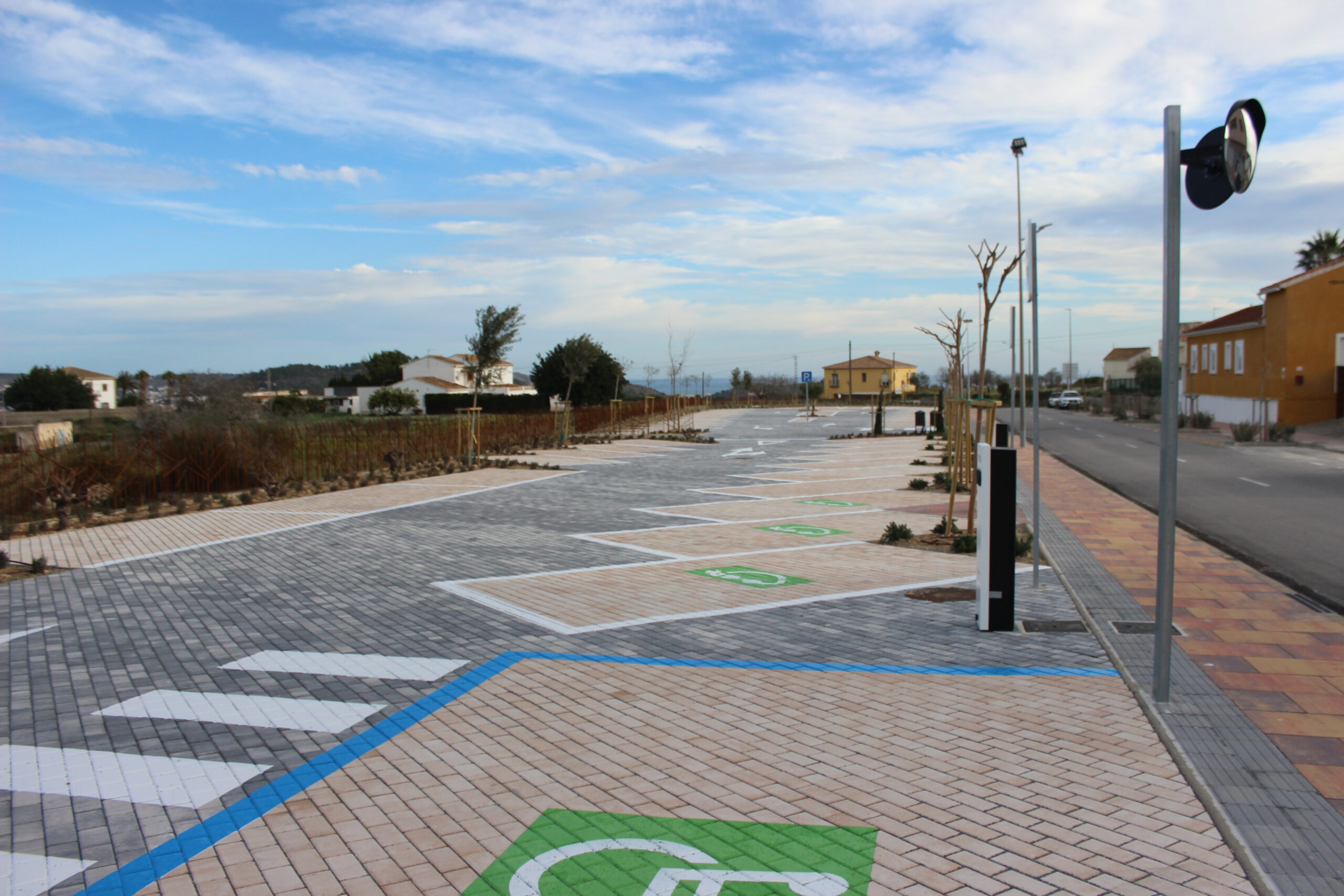 A més de la pròpia zona de pàrquing, s’ha donat continuïtat a la vorera que existia prèviament fins al cementeri municipal, atorgant així seguretat i accessibilitat per als vianants, que poden arribar a peu en pocs minuts des del nucli urbà fins a este aparcament dissuasiu.