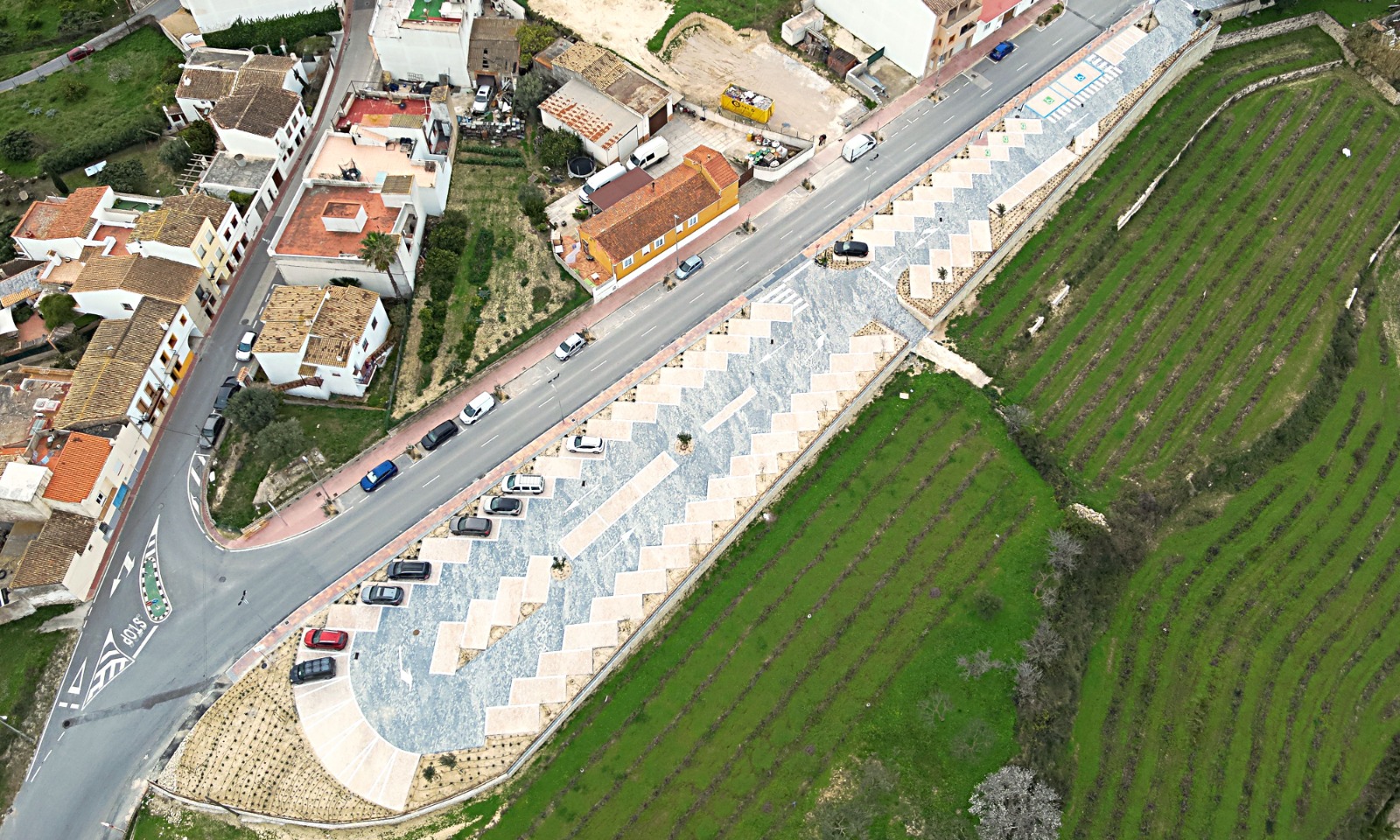 El projecte de l’aparcament El Mirador s’ha concebut com un element de transició entre el nucli urbà i l’entorn natural, prioritzant la integració paisatgística i el respecte mediambiental. En este sentit, les obres s’han executat atenent criteris de sostenibilitat i adaptació al paisatge existent. Així mateix, s’ha aconseguit donar-li un enfocament urbà i fer atractiva a nivell visual una de les entrades principals al municipi, amb vista des de la carretera a l’església Santa María Magdalena.
