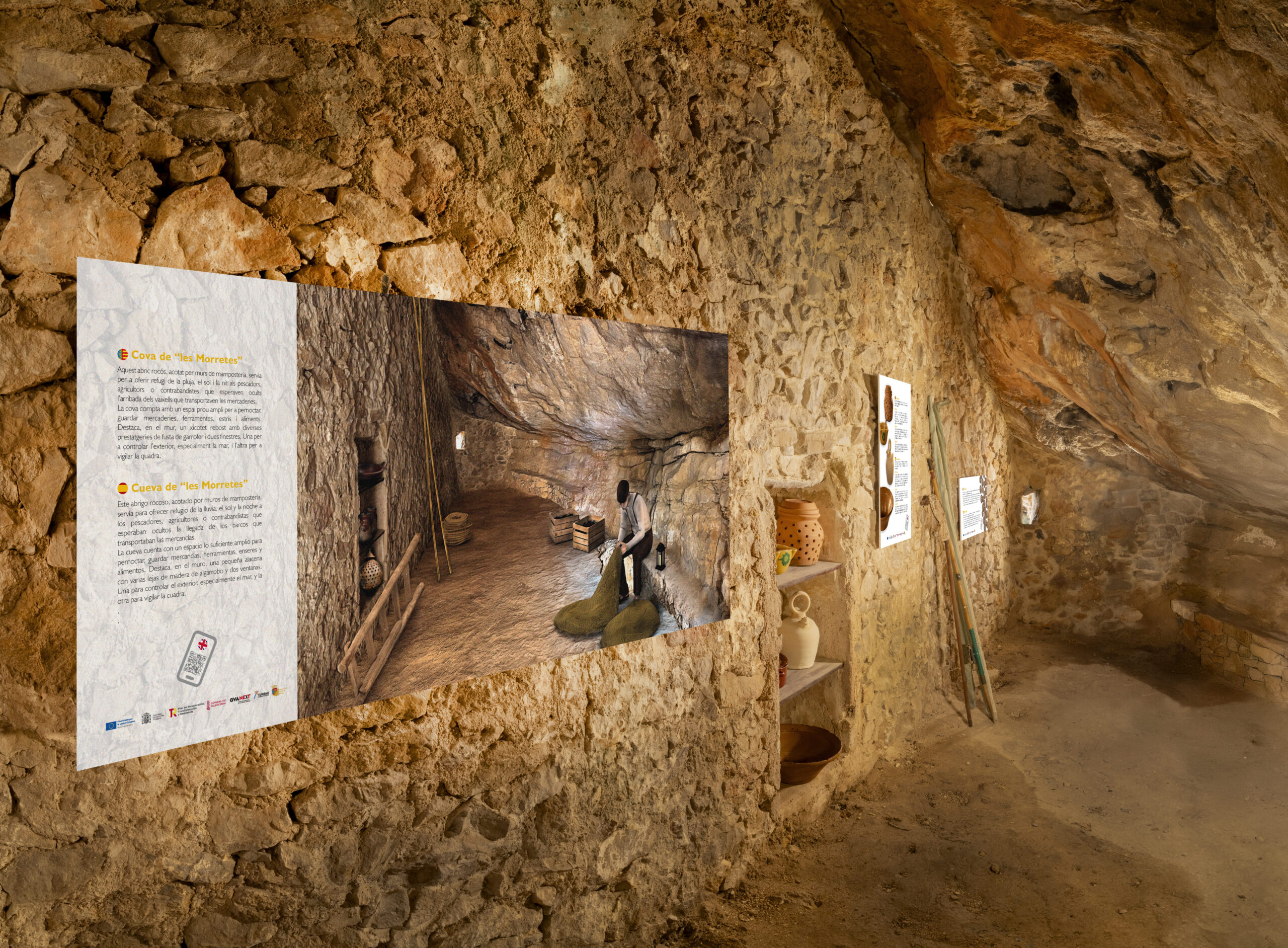 Ara sí. Després dels recents treballs d’instal·lació de panelleria interpretativa, es pot dir que la Cova de les Morretes és ja un museu davant de la mar que rememora la història de les coves dels penya-segats del Poble Nou de Benitatxell que un dia van ser el refugi de contrabandistes, pescadors i agricultors.