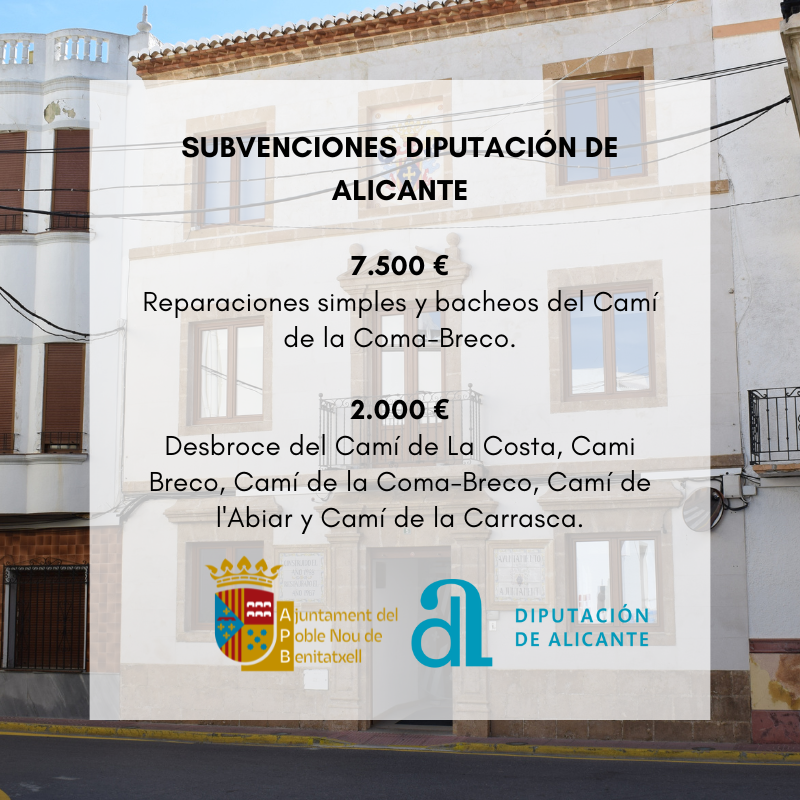 La pasada semana se llevaron a cabo trabajos de reparación en varios caminos rurales gracias a una subvención de la Diputación de Alicante por valor de 7.500 euros para reparaciones simples y bacheo en el Camí de La Coma-Breco, y 2.500 euros para desbroce de los caminos de La Costa, Breco, La Coma-Breco, Abiar y La Carrasca.