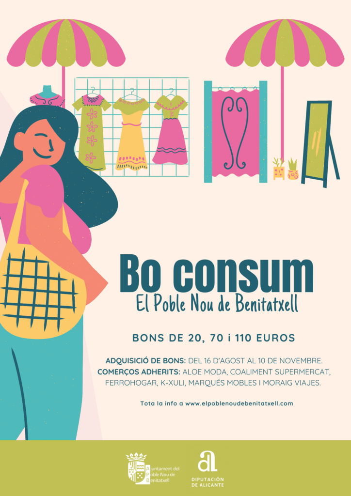 Abierto el plazo de adquisición de Bonos Consumo 2023. Estarán disponibles a partir del 16 de agosto y hasta el 10 de noviembre en la OAC (C/ de les Escoles, 2).