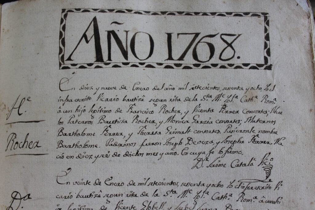 Los visitantes podrán encontrarse documentos curiosísimos como el primer bautizo registrado el 16 de enero de 1768 de Bartolomé Rocher (hijo de Francisco Rocher y Vicenta Ferrer). Por otra parte, el primer matrimonio registrado tuvo lugar el 7 de febrero de 1768 entre Vicente Martínez (labrador y vecino de Xàbia) con Francisca Soler, del Poble Nou de Benitatxell.
