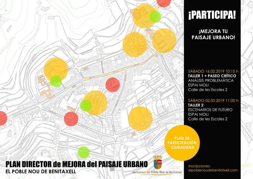 Desde el nuevo equipo del Poble Nou de Benitatxell hemos iniciado un ambicioso e ilusionante plan de paisaje y regeneración urbana que va a revolucionar la estética urbana desde el respeto a la tradición. Un proyecto que, consideramos, es del pueblo y de todos, de ahí que queramos hacer partícipes a todos los vecinos y vecinas. Los concejales ya han definido junto a los técnicos una primera memoria. Es ahora el turno de los talleres de participación ciudadana y concursos de ideas de cada una de las actuaciones. El proyecto persigue un objetivo muy claro: lograr que El Poble Nou de Benitatxell tenga una estética urbana identificable, que concilie la tradición y propuestas artísticas de vanguardia y que destaque por la luminosidad y el carácter mediterráneo.