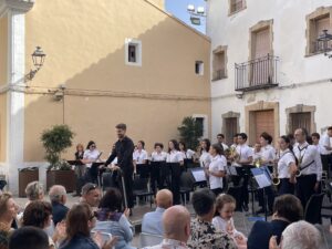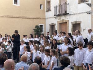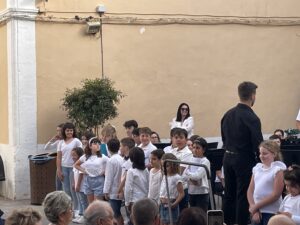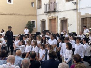 The children accompanied the Band in their last piece. They performed ‘Lluna Mediterrània’, a score by Teo Aparicio-Beltrán for band and choir of white voices which is a hymn to peace, a hymn to hope and which captures the essence, the warmth and the friendly and festive spirit of all the people bathed by this warm sea.