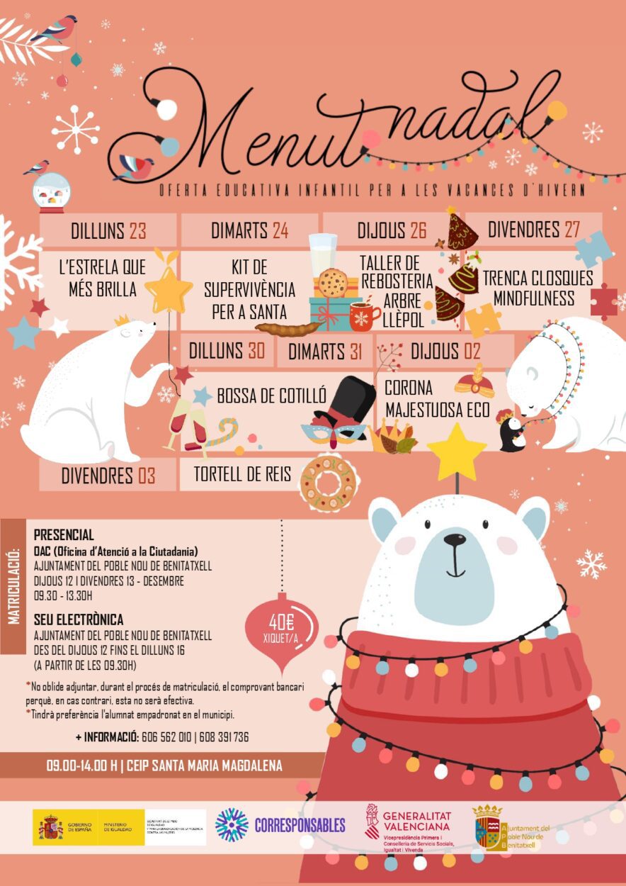 The Council of El Poble Nou de Benitatxell, via the Councillorship of Education and Childhood by Jorge Pascual, is once again offering the Christmas School, which will help to conciliate the family and work life of the inhabitants of El Poble Nou de Benitatxell.