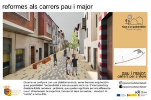 The first work to begin imminently next week will be the redevelopment of the streets La Pau, Mayor and Cantonet de Bufó, following the model already initiated on Alicante Avenue and Llebeig Street. A new mobility paradigm will serve to promote another way of living, with traffic-calmed streets, in which the pedestrian is the protagonist of the street space, recovering social habits that require safe and friendly places.