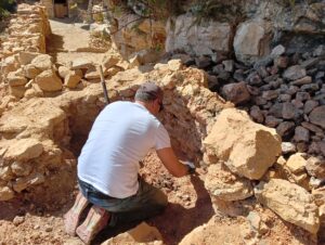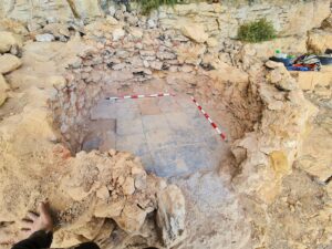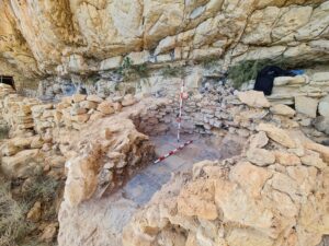 In addition, the intervention has been used to excavate a cave next to Cova de les Morretes. No human presence has been documented in this cave, but two small shelters have been found that were probably used for cattle, as two beds of straw and seaweed and some remains of goat droppings have been detected.