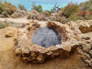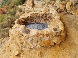 In more detail, the restorer Andrea Sanz, accompanied by the archaeologists, carried out the restoration and consolidation of the structure. A traditional sand and lime mortar without additives was used. After the excavation, the walls were consolidated, adding a sacrificial row, an upper structure to protect the original part of the oven from the rain, vandalism, etc.