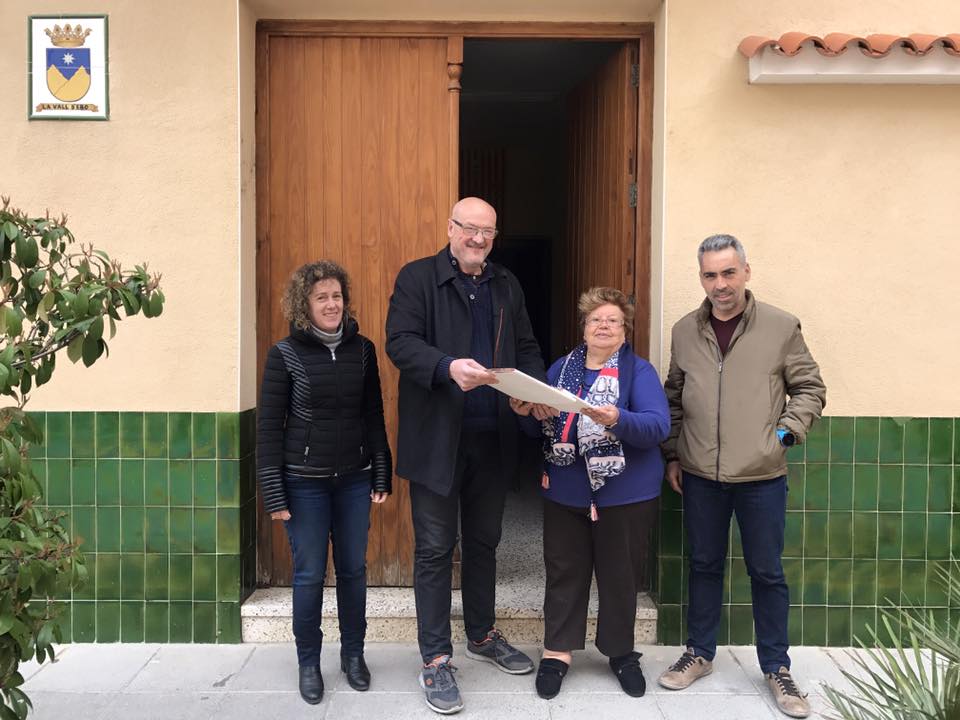 Los documentos, ahora restaurados, han sido entregados por el alcalde poblero, Josep Femenia, el concejal de Cultura, Manolo Segarra y la bibliotecaria Lola Bolufer, a la alcaldesa de la Vall d'Ebo.