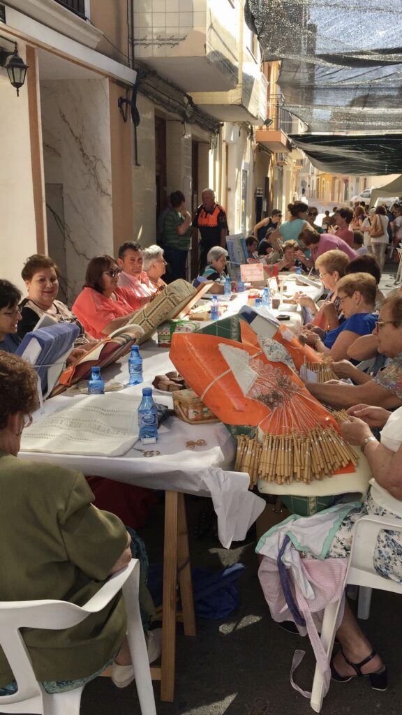 «El encaje de bolillos es terapéutico, relaja, hace que te olvides de todo y además creas cosas bonitas. Cuando se produce el silencio, el sonido del choque de los bolillos se escucha como un analgésico. La calidez del sonido varía dependiendo del material de los bolillos, hueso, boj, pino, et, pero, eso sí, todos son relajantes” explicó  Teresa Buigues, maestra de encaje de bolillos en El Poble Nou de Benitatxell.
