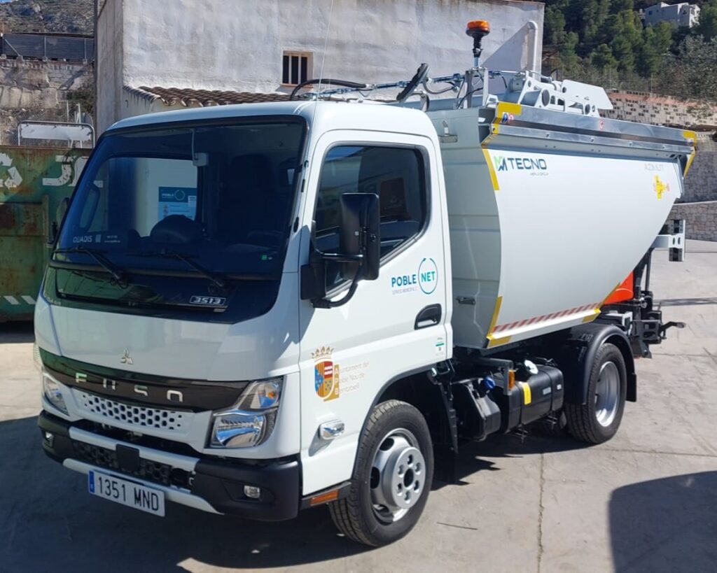 Benitatxell, 20 de marzo de 2024. El Ayuntamiento de El Poble Nou de Benitatxell, a través de la empresa pública de servicios Poble Net S.L., continúa mejorando la flota de vehículos para la prestación de un servicio de recogida de residuos más óptimo. Recientemente ha incorporado dos nuevos camiones de diferente tonelaje: uno de 3.500 kg, de dimensiones más pequeñas, y otro bicompartimentado de 11 m³ (con un compartimento de 8 m³ y otro de 3 m³), el cual permite cargar a la vez las fracciones de envases o papel y cartón en uno de los depósitos, y la fracción orgánica en el otro, con lo que se consigue optimizar la recogida.