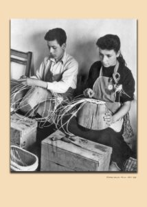Una dècada després, la feina d’elaboració i muntatge es va traslladar en part a les cases particulars i es va implantar el que s’anomena «domestic system», “putting out system” o taller de treball al domicili, una manera de treballar on l’empresari proporcionava les matèries primeres (plàstic, jonc, cordell de les anses, etc.) i que es caracteritzava per la flexibilitat horària que permetia compaginar les tasques agrícoles i/o domèstiques, es trobava fora de qualsevol reglamentació laboral i suposava l’increment d’hores diàries treballades per part de la dona en la nova ocupació.