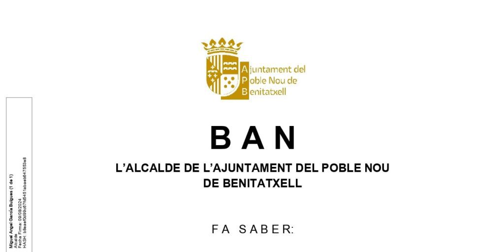 BAN D'ALCALDIA SOBRE LA NO POTABILITAT DE L'AIGUA PER A CONSUM HUMÀ